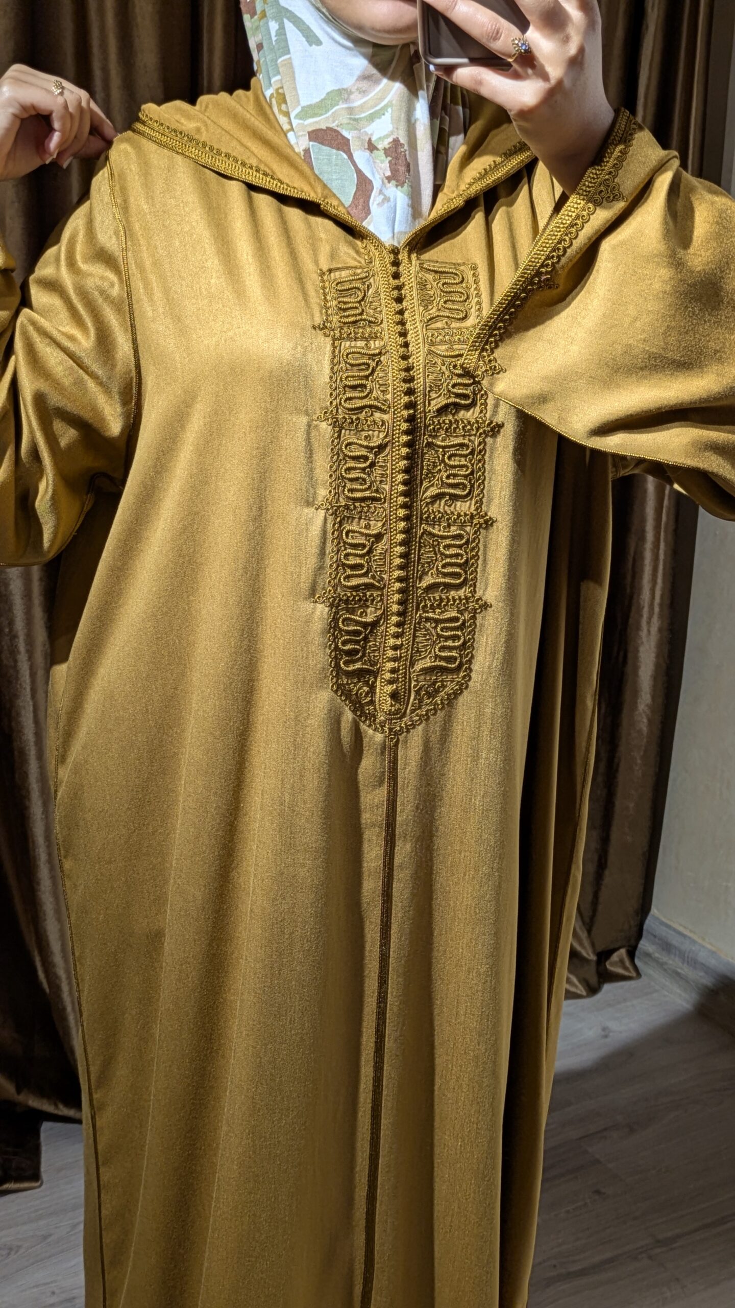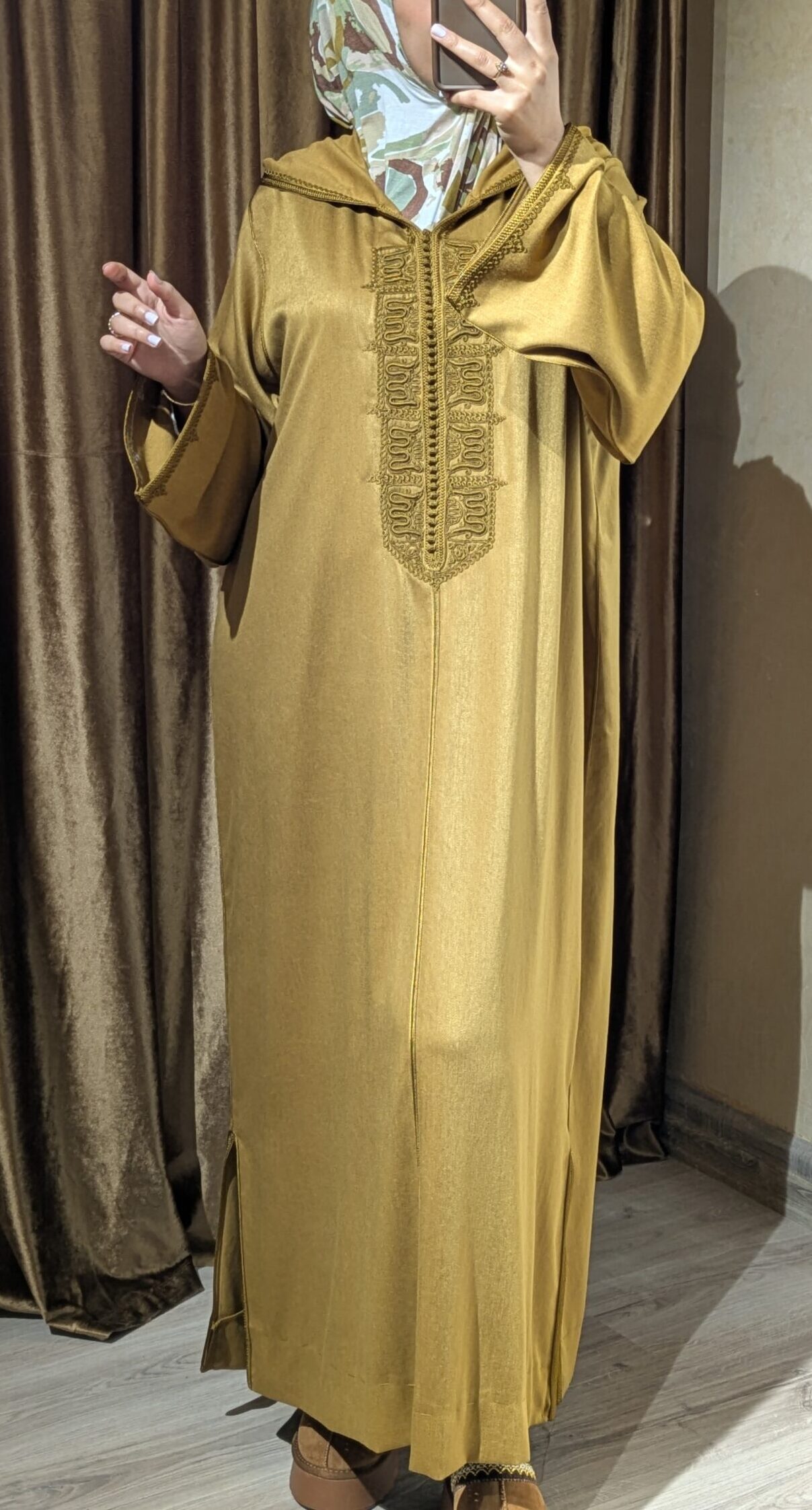 Djellaba Rimal – Mustard reflects the warmth and beauty of Morocco’s golden landscapes. Inspired by rimal — the desert sands — this djellaba embodies natural elegance, simplicity, and authentic Moroccan craftsmanship.
